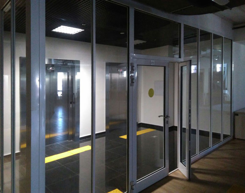 Противопожарные перегородки из триплекса могут изготавливаться как в полностью остекленном варианте, так и в частично остекленном исполнении. Основное предназначение таких конструкций — это разделение общего помещения на несколько отдельных рабочих зон. При этом преследуется несколько целей: